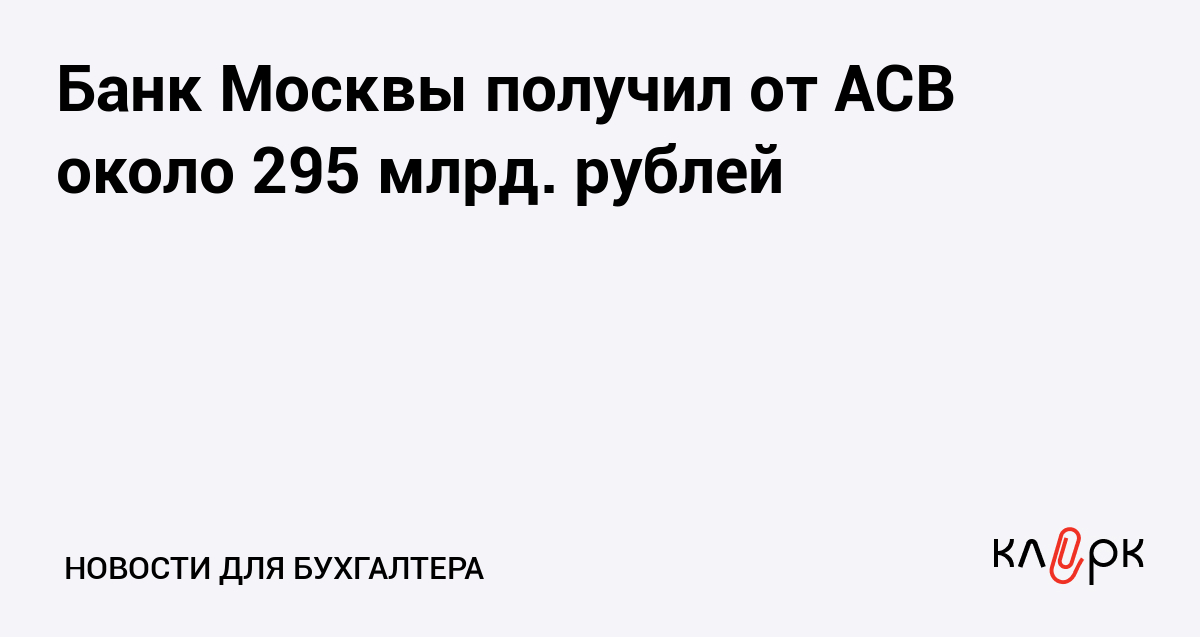 Банк Москвы получил от АСВ около 295 млрд. рублей