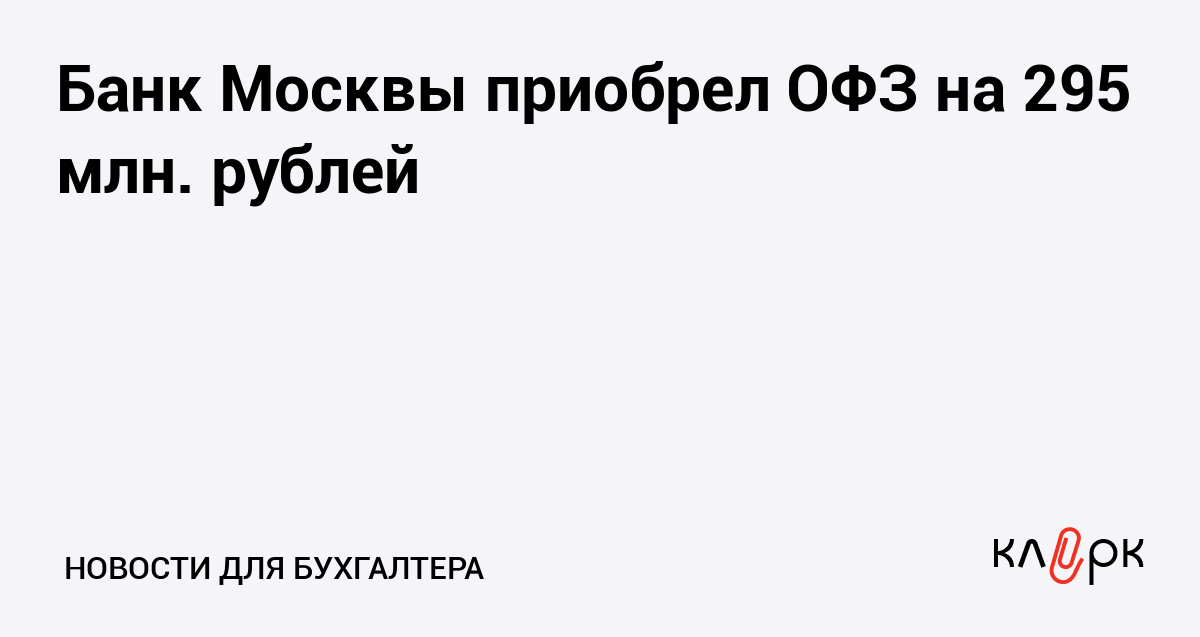 Банк Москвы приобрел ОФЗ на 295 млн. рублей