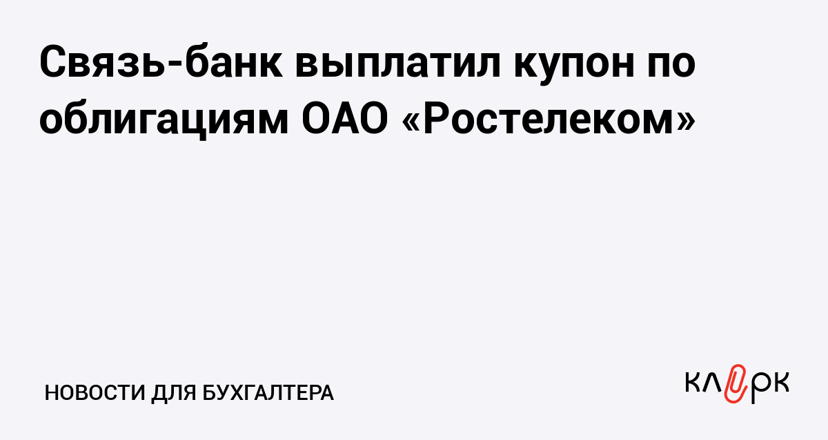 Связь-банк выплатил купон по облигациям ОАО «Ростелеком»