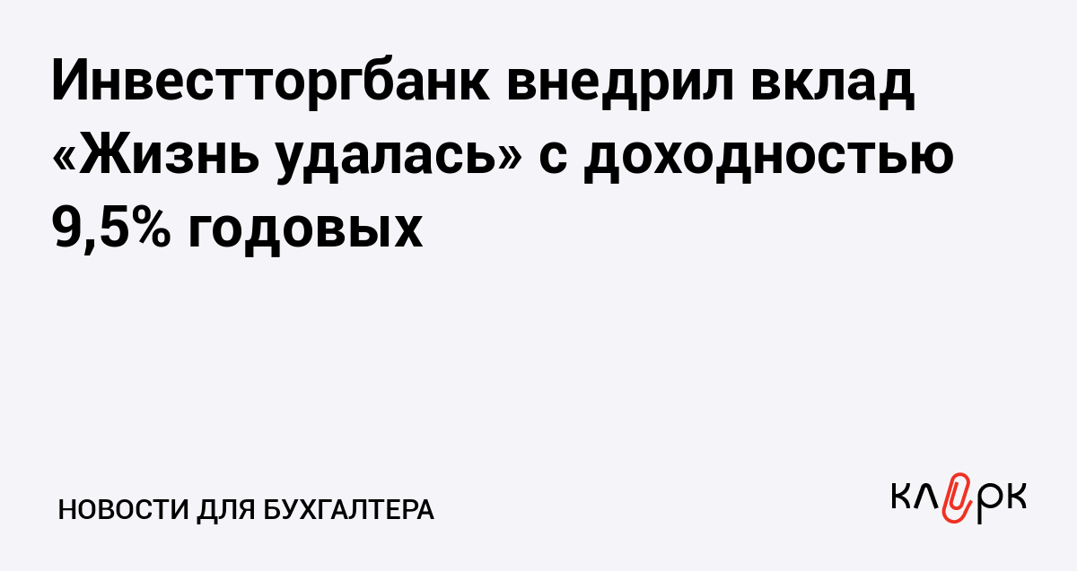 Инвестторгбанк внедрил вклад «Жизнь удалась» с доходностью 9,5% годовых