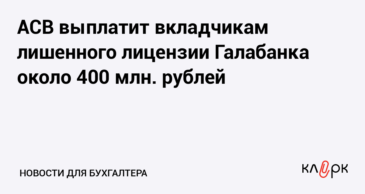 АСВ выплатит вкладчикам лишенного лицензии Галабанка около 400 млн. рублей