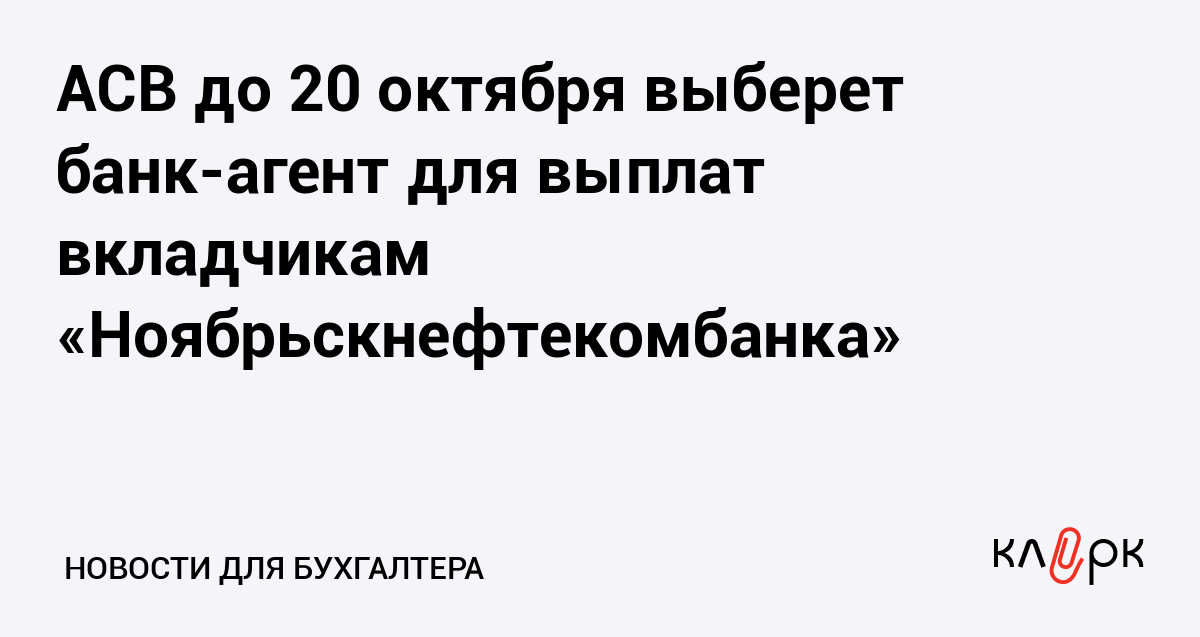 АСВ до 20 октября выберет банк-агент для выплат вкладчикам «Ноябрьскнефтекомбанка»