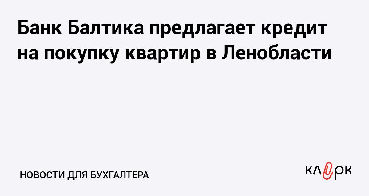 Банк Балтика предлагает кредит на покупку квартир в Ленобласти