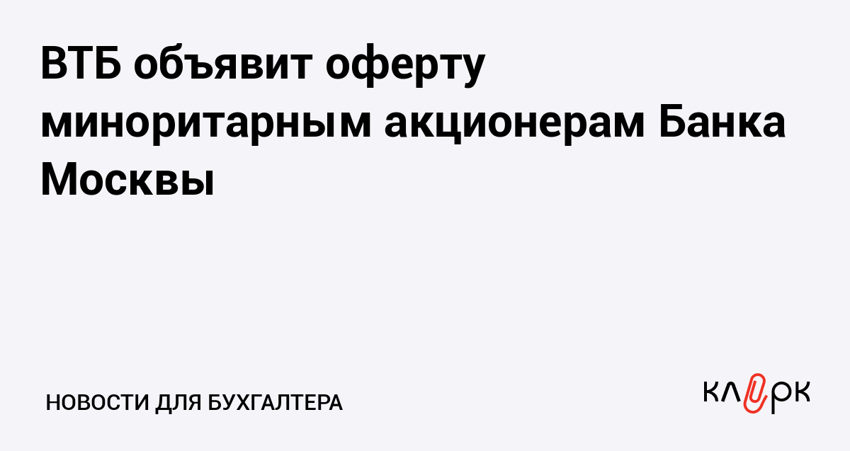 ВТБ объявит оферту миноритарным акционерам Банка Москвы