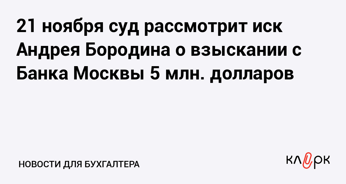 21 ноября суд рассмотрит иск Андрея Бородина о взыскании с Банка Москвы 5 млн. долларов