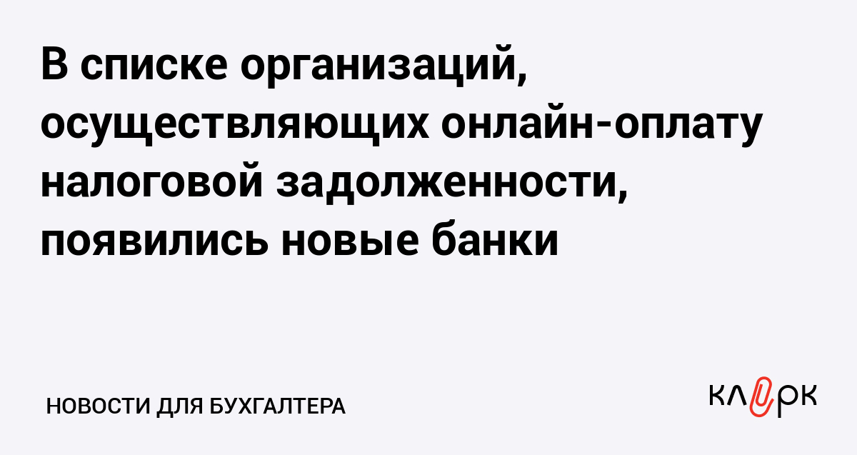 В списке организаций, осуществляющих онлайн-оплату налоговой задолженности, появились новые банки