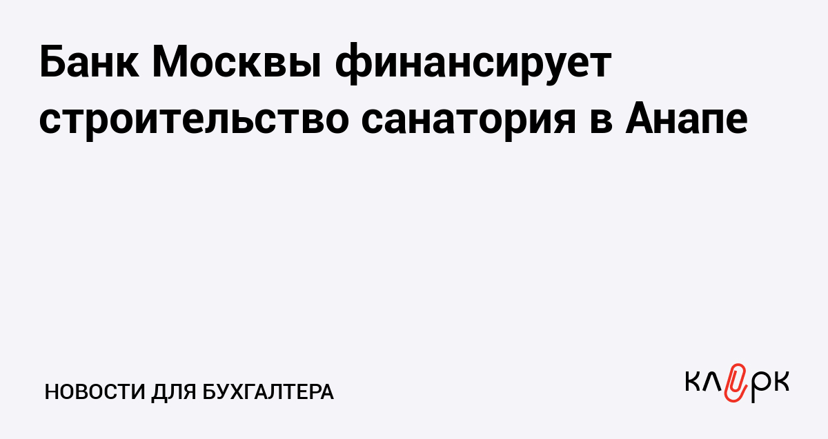 Банк Москвы финансирует строительство санатория в Анапе