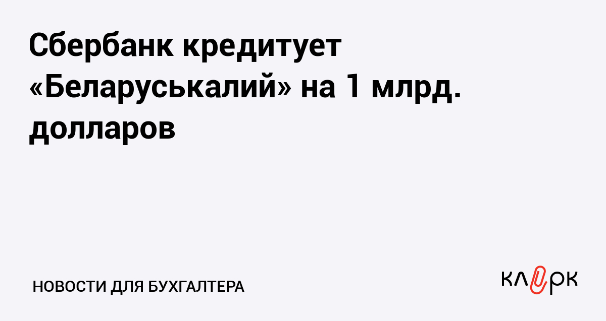 Сбербанк кредитует «Беларуськалий» на 1 млрд. долларов
