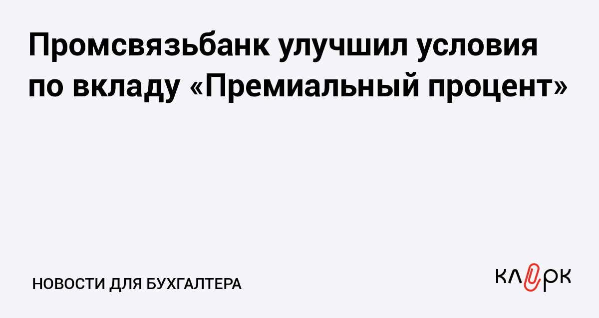 Промсвязьбанк улучшил условия по вкладу «Премиальный процент»