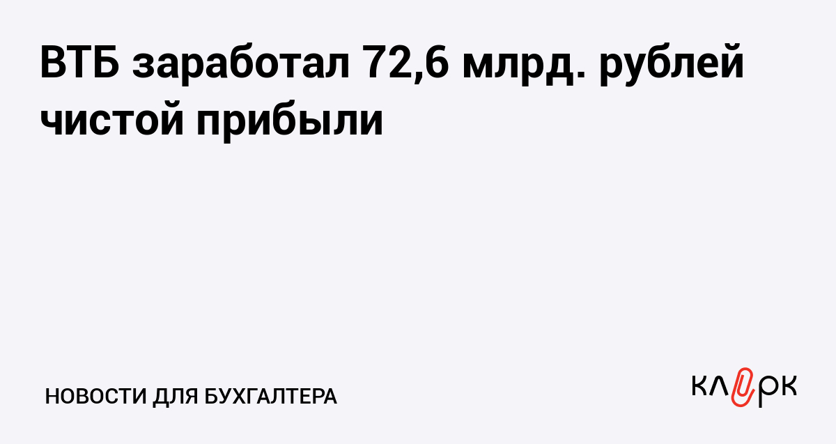 ВТБ заработал 72,6 млрд. рублей чистой прибыли