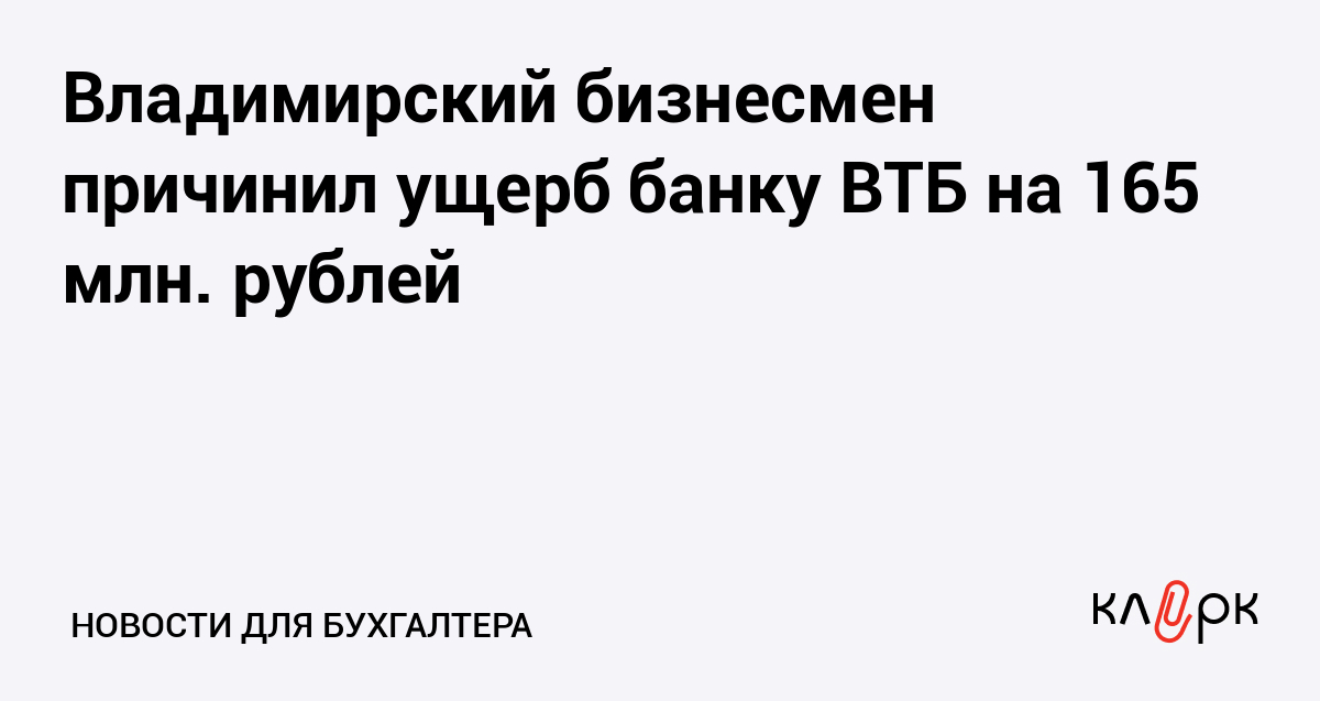 Владимирский бизнесмен причинил ущерб банку ВТБ на 165 млн. рублей