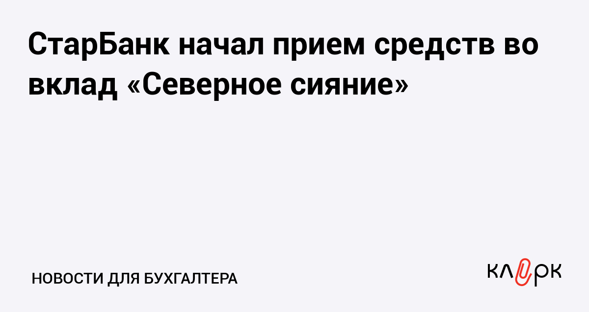 СтарБанк начал прием средств во вклад «Северное сияние»