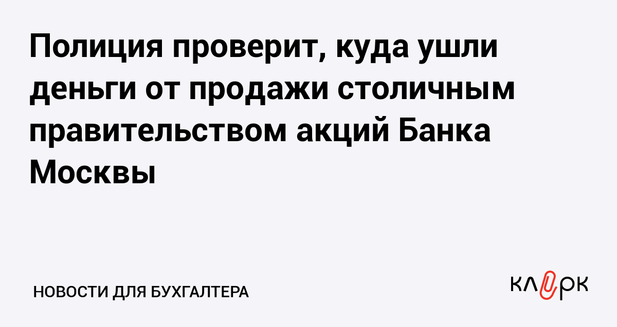 Полиция проверит, куда ушли деньги от продажи столичным правительством акций Банка Москвы