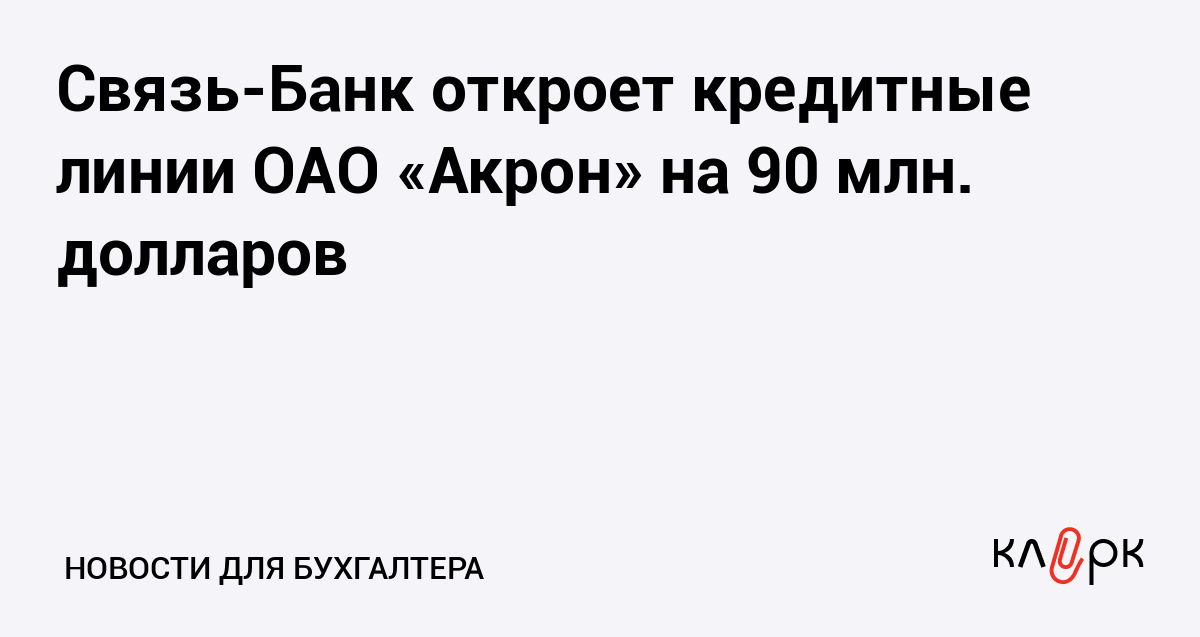 Связь-Банк предоставит кредиты ОАО «Акрон» и его дочернему обществу ОАО «Дорогобуж» на общую сумму 90 млн. долларов.