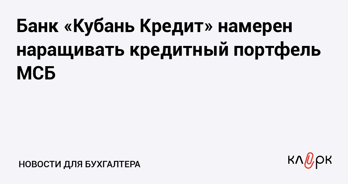 Банк «Кубань Кредит» намерен наращивать кредитный портфель МСБ
