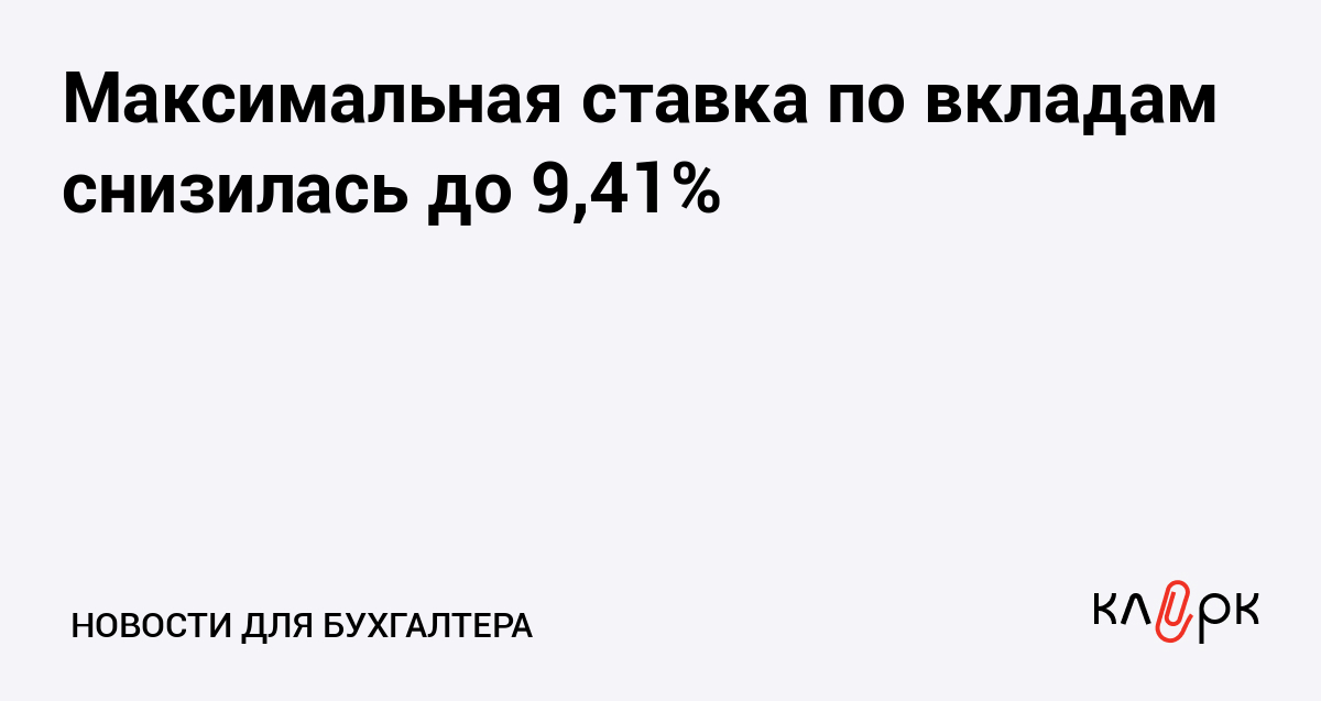 ЦБ РФ провел мониторинг максимальных процентных ставок по рублевым вкладам. Как сообщил департамент внешних и общественных связей Банка России, в 3 декаде декабря максимальная ставка по вкладам в российских рублях десяти кредитных организаций, привлекающих наибольший объем депозитов физлиц, составила 9,41%.