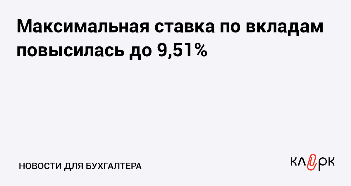 ЦБ РФ провел мониторинг максимальных процентных ставок по рублевым вкладам. Как сообщил департамент внешних и общественных связей Банка России, в 1 декаде января максимальная ставка по вкладам в российских рублях десяти кредитных организаций, привлекающих наибольший объем депозитов физлиц, составила 9,51%.
