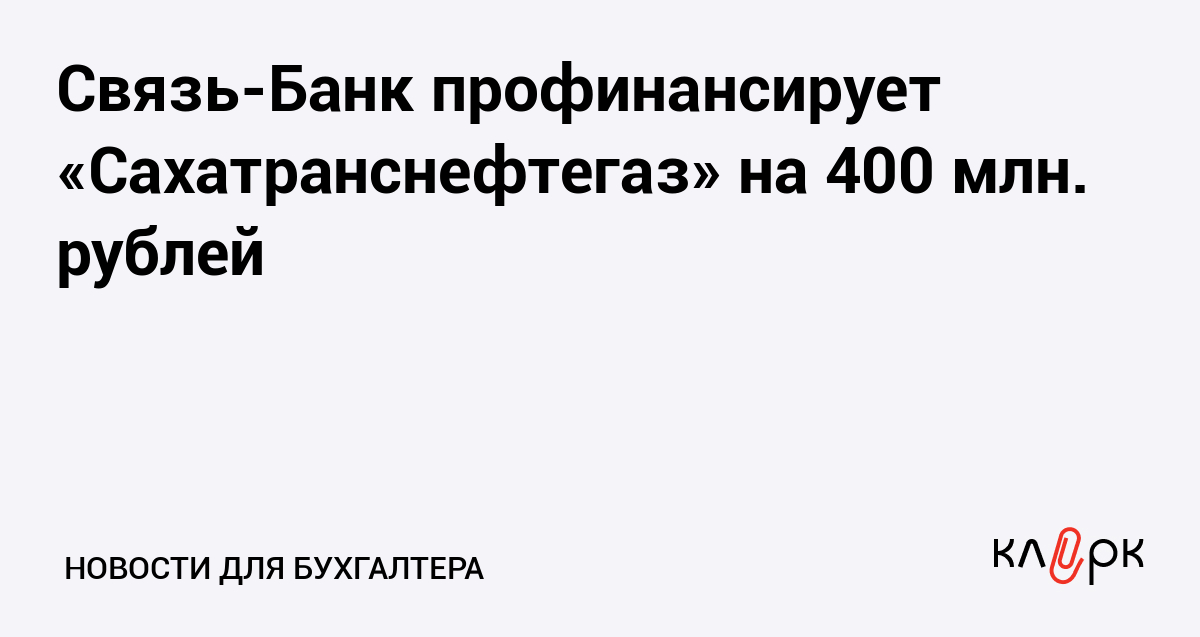 Связь-Банк предоставит кредит в сумме 400 млн. рублей ОАО «Сахатранснефтегаз», сфера деятельности которого - транспортировка природного газа по магистральным газопроводам, поставка потребителям, переработка природного газа и газового конденсата.