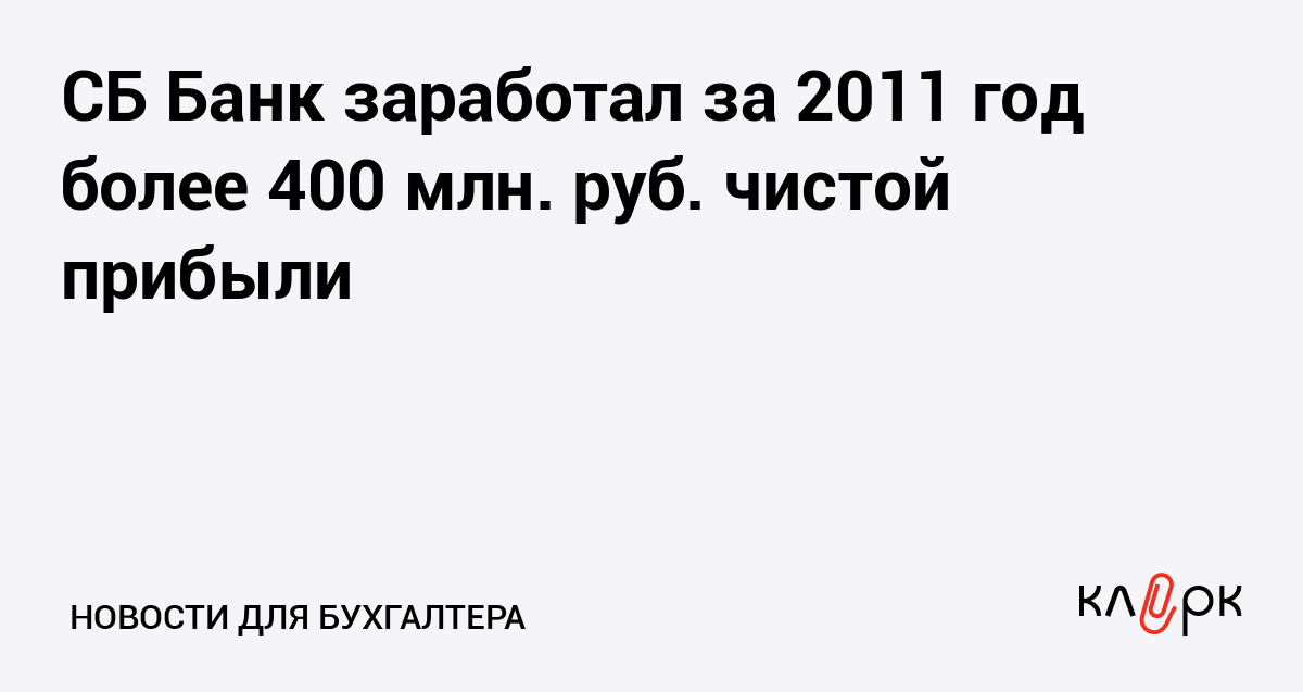 СБ Банк заработал за 2011 год более 400 млн. руб. чистой прибыли