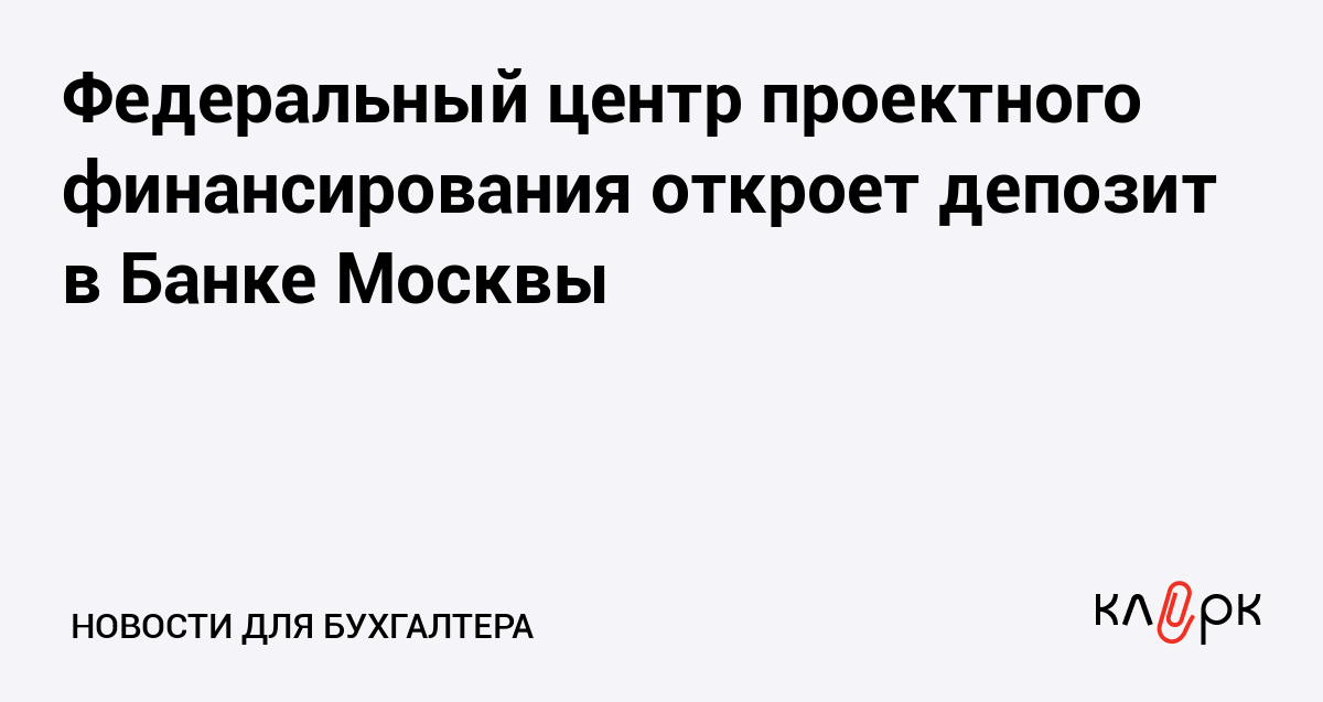 Федеральный центр проектного финансирования откроет депозит в Банке Москвы