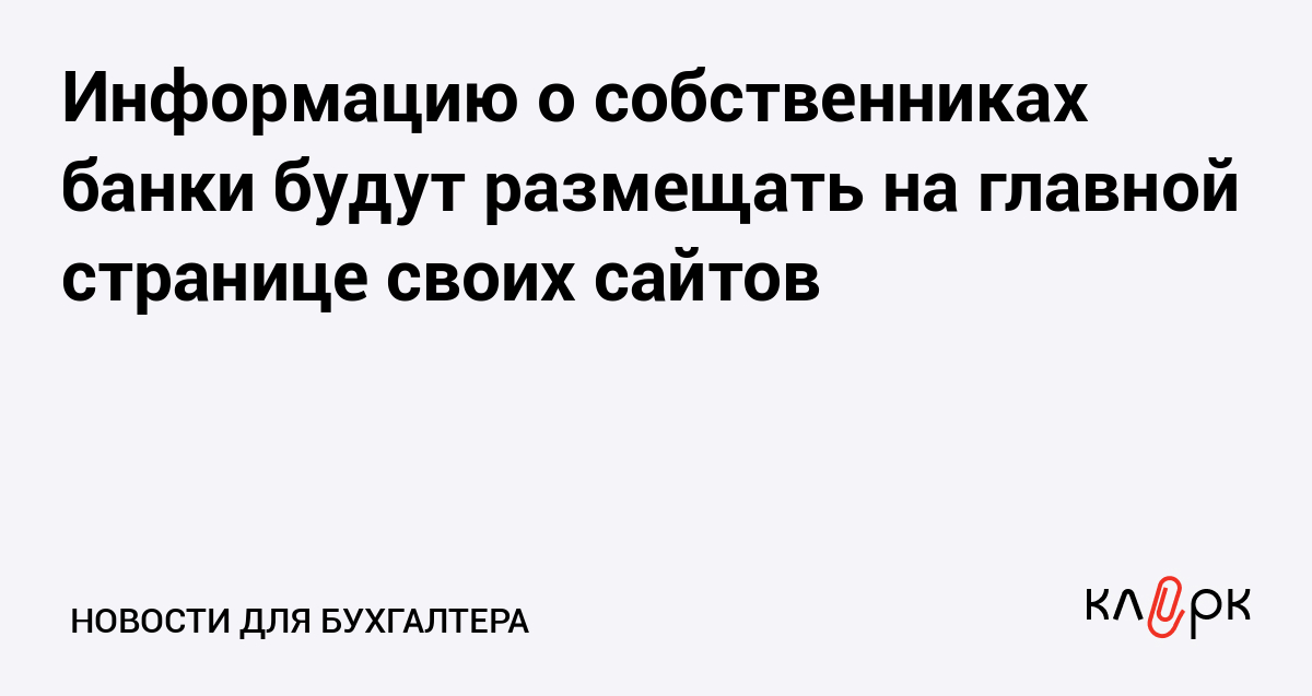 Информацию о собственниках банки будут размещать на главной странице своих сайтов