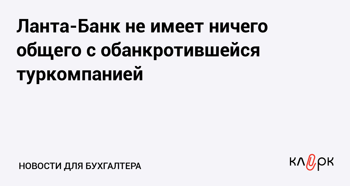 Ланта-Банк, название которого созвучно с наименованием туристической компании «Ланта-тур вояж», объявившей себя банкротом, поспешил сообщить своим клиентам и партнерам, что кредитная организация ни в какой степени не связана с этой компанией.