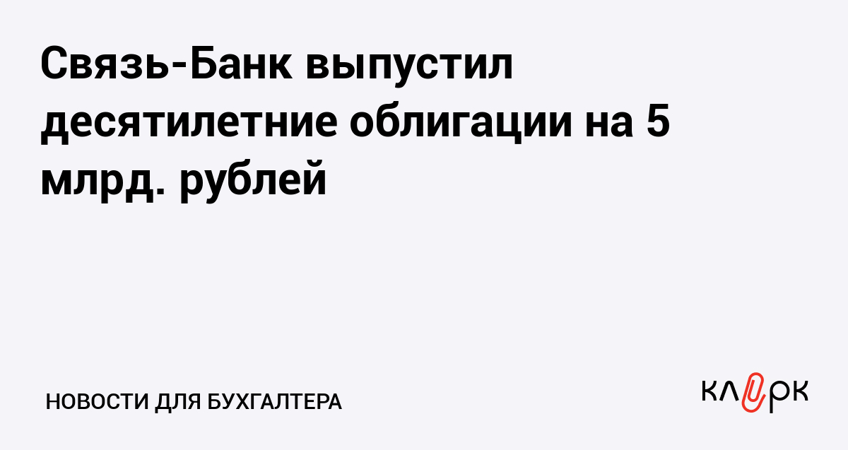 Связь-Банк выпустил десятилетние облигации на 5 млрд. рублей