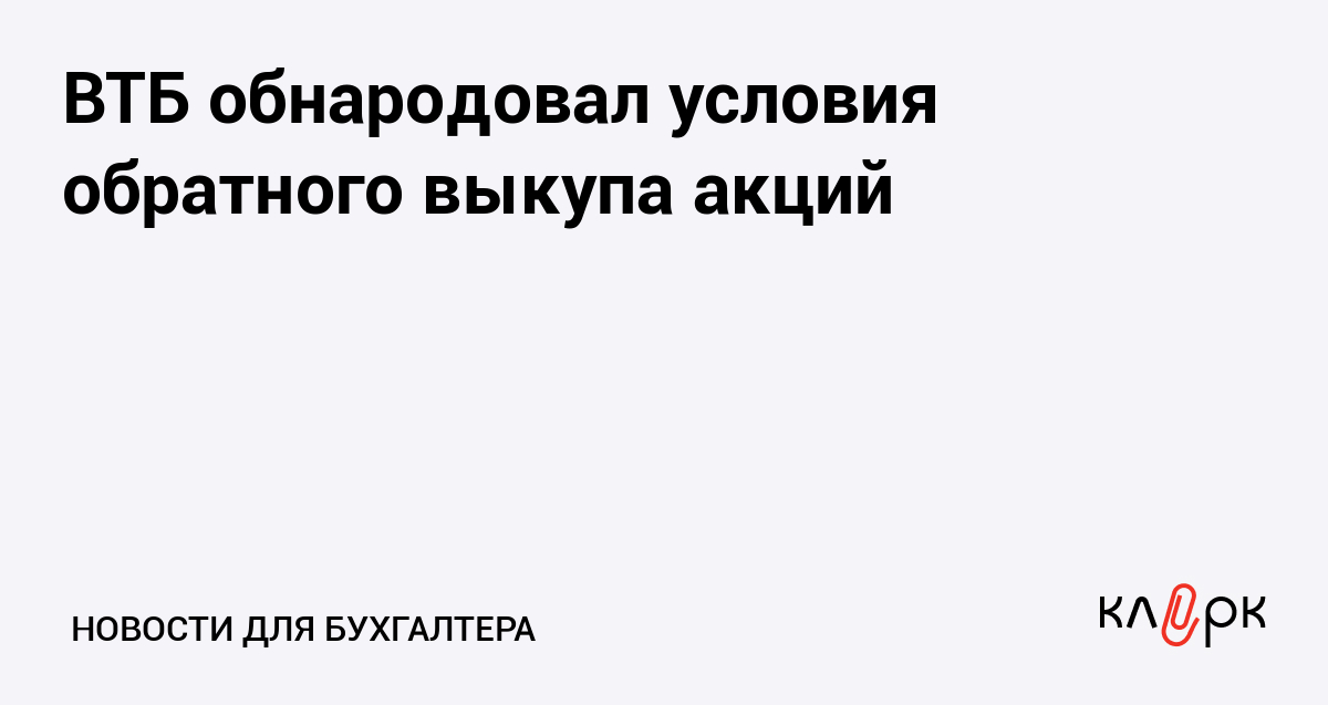 ВТБ обнародовал условия обратного выкупа акций
