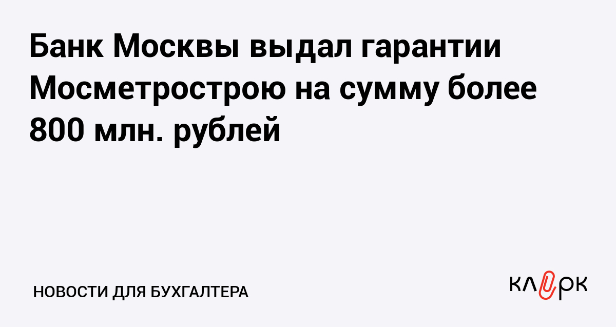 Банк Москвы предоставил банковские гарантии на общую сумму 821 млн. рублей ОАО «Мосметрострой».