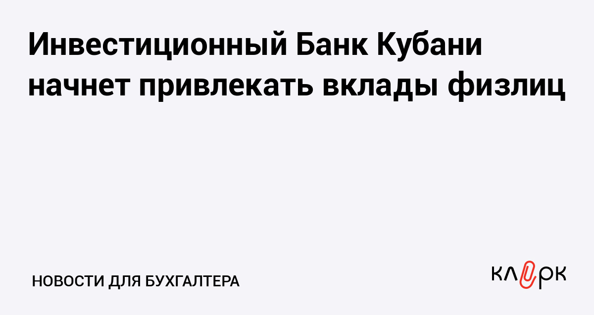 Инвестиционный Банк Кубани начнет привлекать вклады физлиц