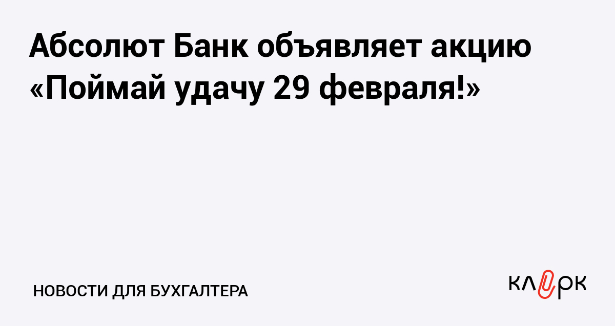 Абсолют Банк объявляет акцию «Поймай удачу 29 февраля!»