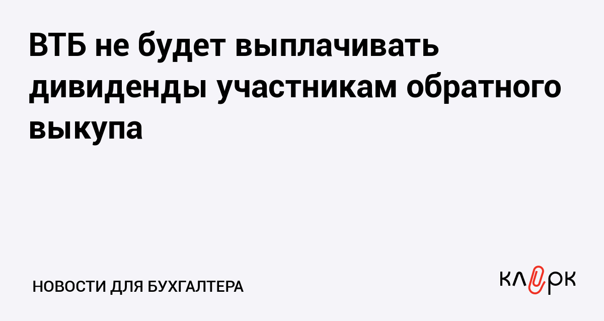 ВТБ не будет выплачивать дивиденды участникам обратного выкупа