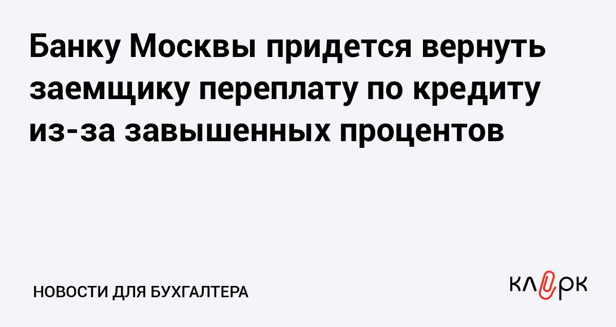 Банку Москвы придется вернуть заемщику переплату по кредиту из-за завышенных процентов