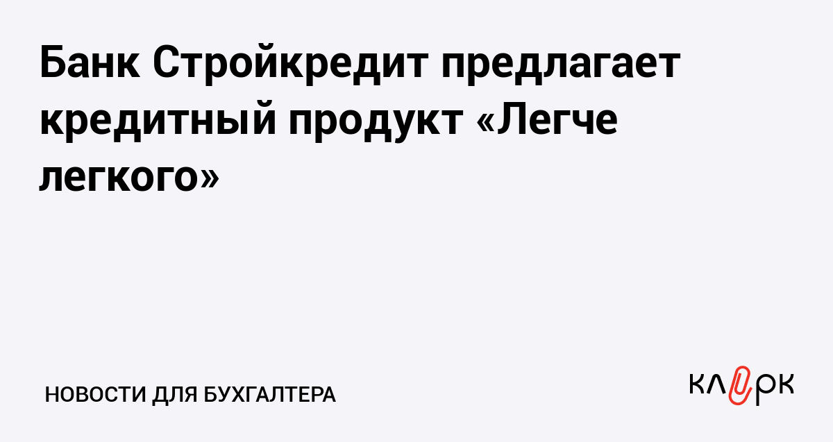Банк Стройкредит предлагает кредитный продукт «Легче легкого»