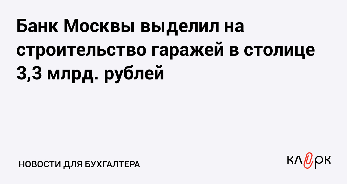 Банк Москвы предоставит кредит в сумме 3,3 млрд. рублей государственному унитарному предприятию г. Москвы «Дирекция гаражного строительства». Средства выделяются в рамках реализации городской целевой программы гаражного строительства.