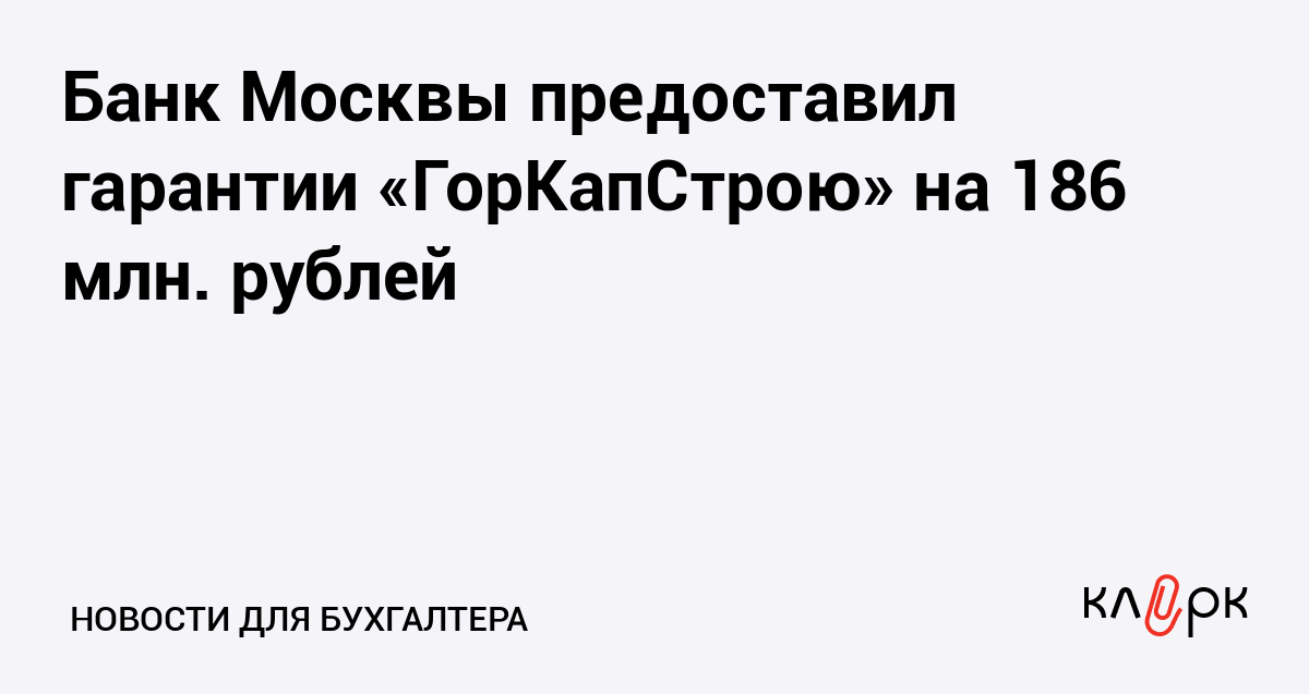 Четыре банковских гарантии на общую сумму 186 млн. рублей предоставил Банк Москвы компании «ГорКапСтрой».