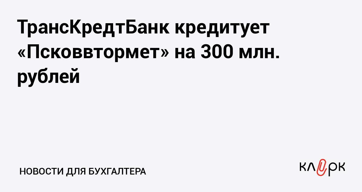 ТрансКредтБанк кредитует «Псковвтормет» на 300 млн. рублей