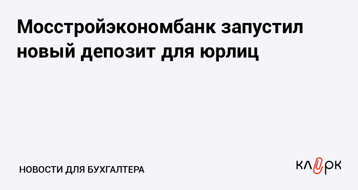 Мосстройэкономбанк запустил новый депозит для юрлиц