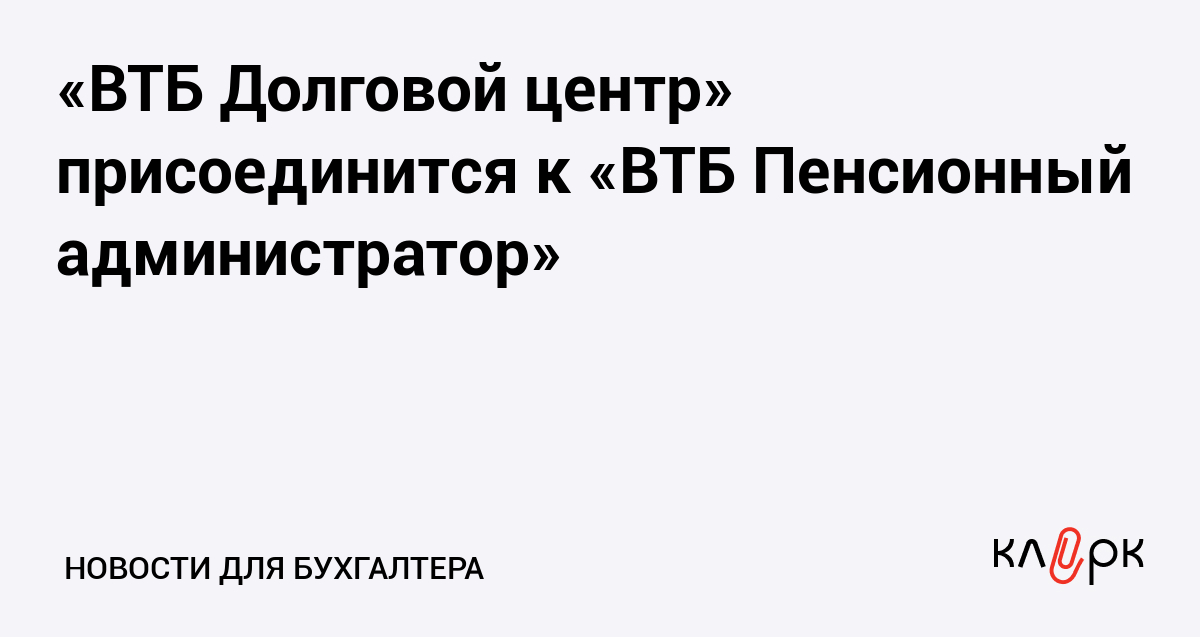 «ВТБ Долговой центр» присоединится к «ВТБ Пенсионный администратор»