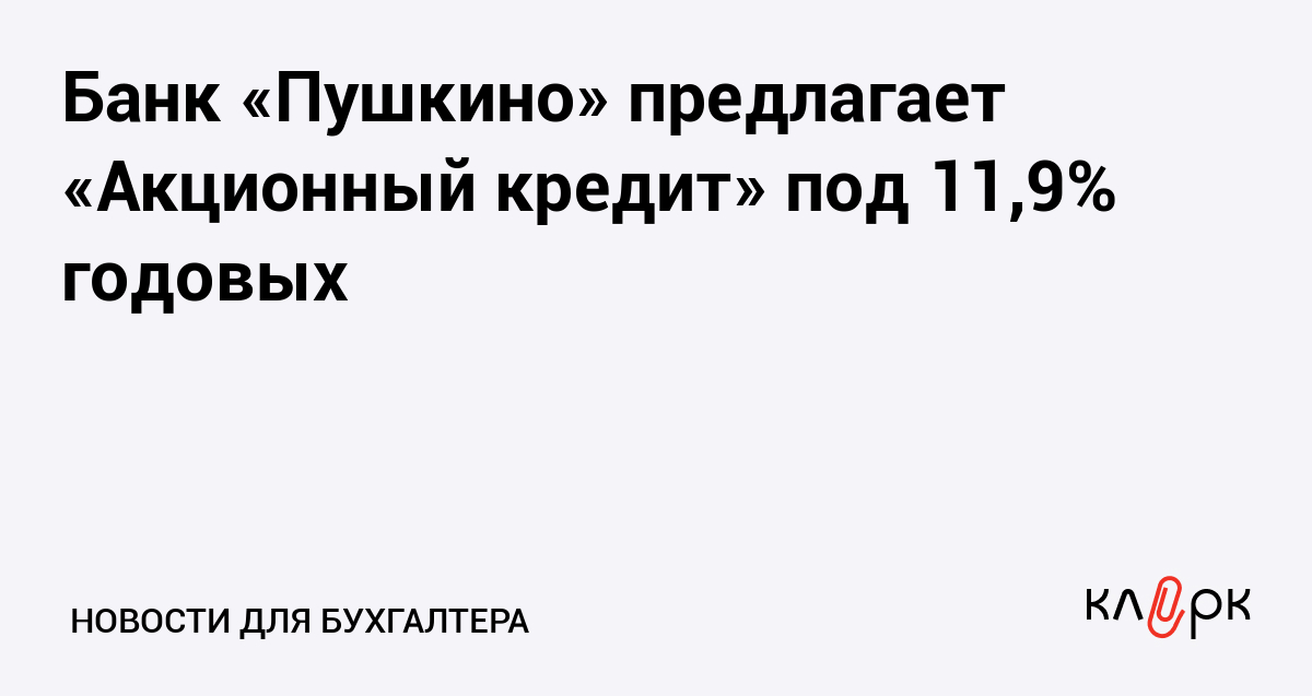Банк «Пушкино» предлагает «Акционный кредит» под 11,9% годовых