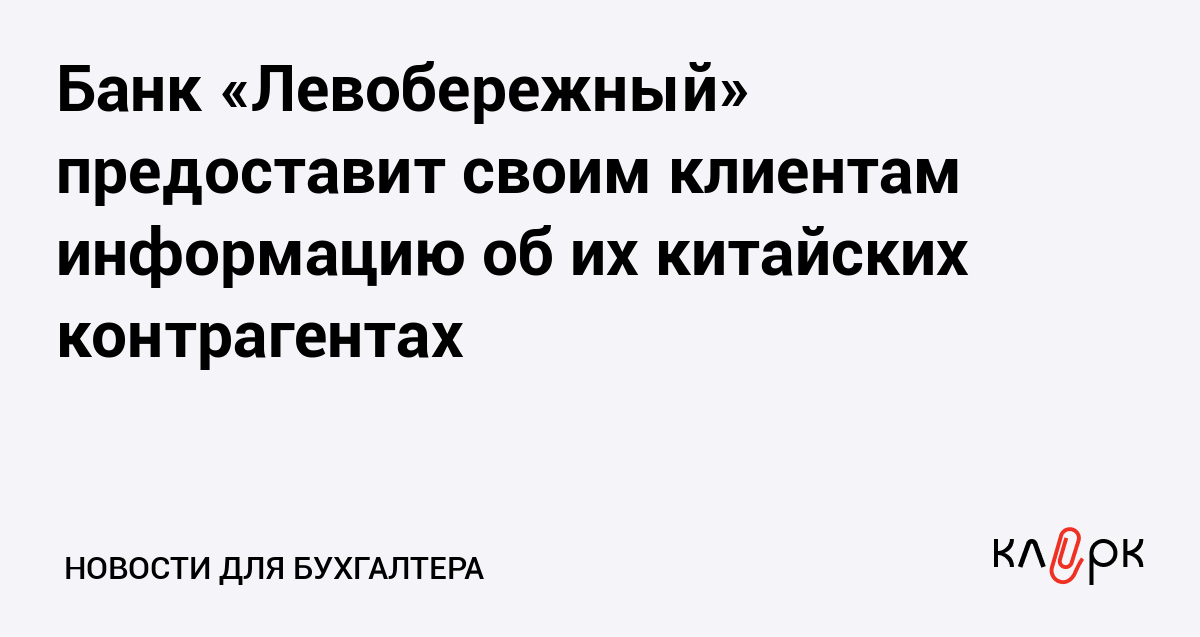 Банк «Левобережный» предоставит своим клиентам информацию об их китайских контрагентах