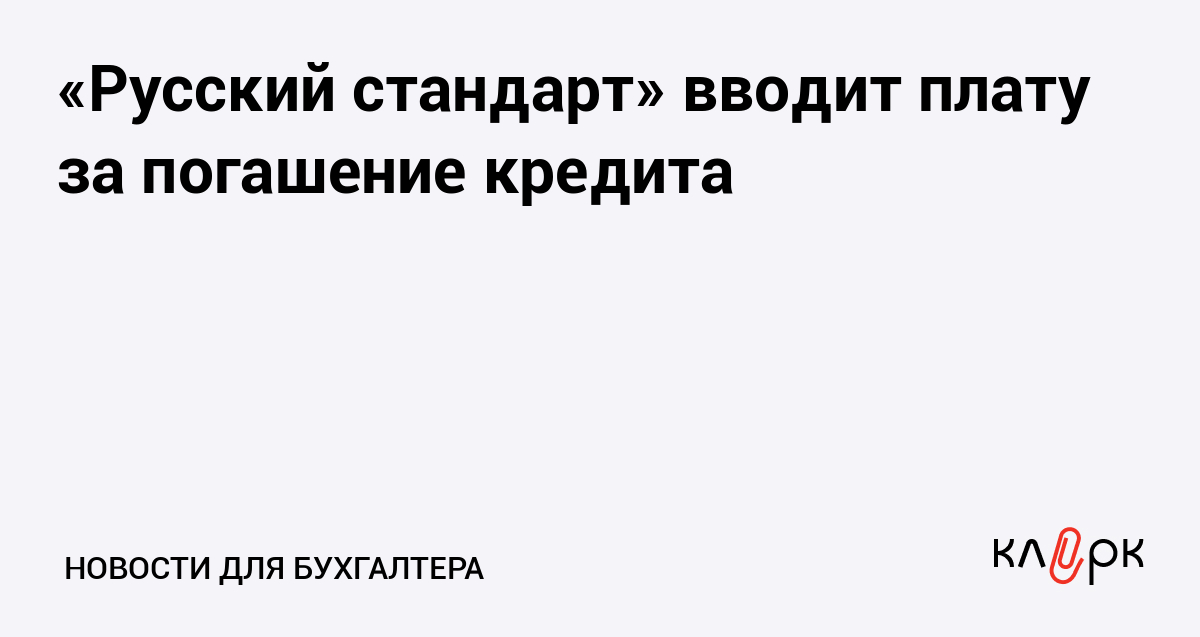 «Русский стандарт» вводит плату за погашение кредита