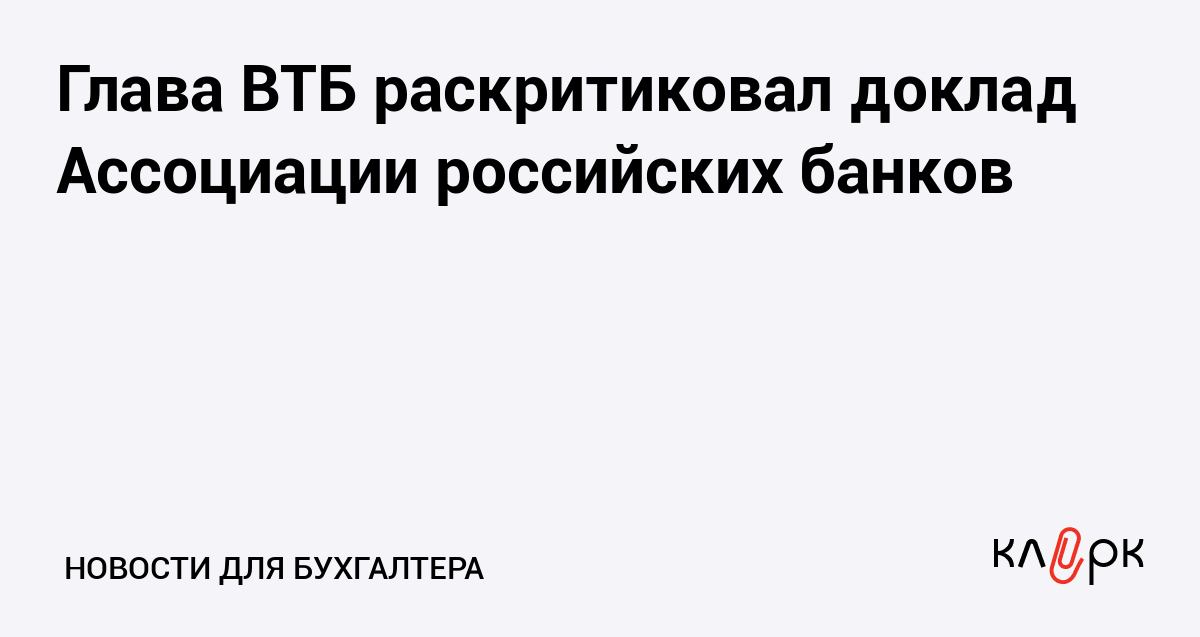 Глава ВТБ раскритиковал доклад Ассоциации российских банков