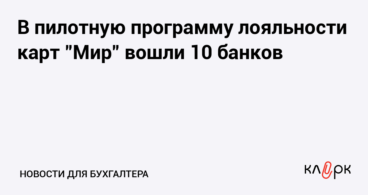 В пилотную программу лояльности карт "Мир" вошли 10 банков