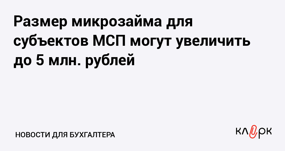 Размер микрозайма для субъектов МСП могут увеличить до 5 млн. рублей