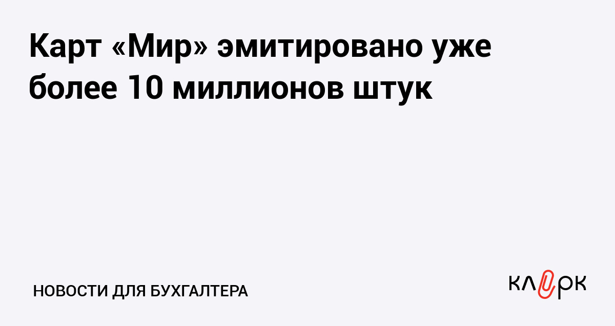 Карт «Мир» эмитировано уже более 10 миллионов штук