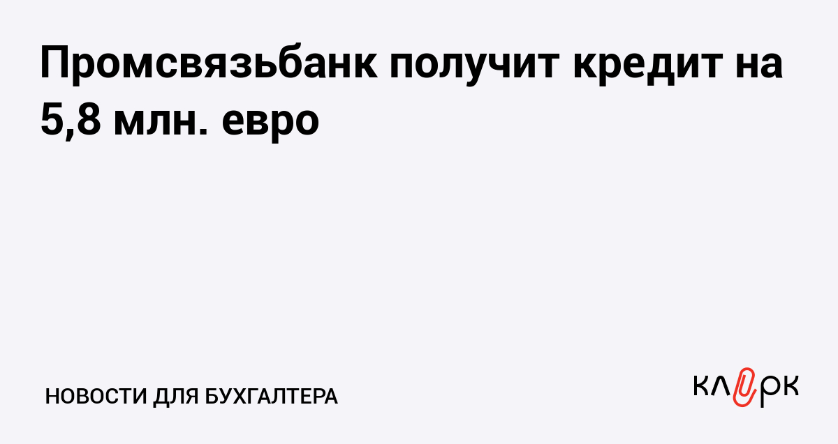 Промсвязьбанк получит кредит на 5,8 млн. евро