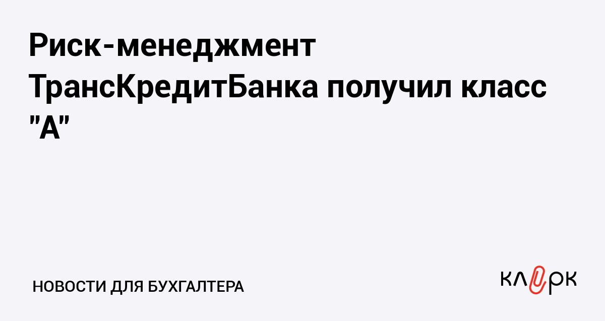 Риск-менеджмент ТрансКредитБанка получил класс "А"
