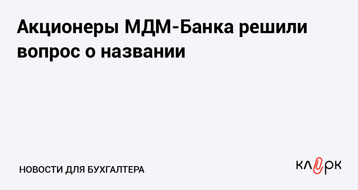 Новое полное фирменное наименование банка - Открытое акционерное общество "МДМ-Банк", сокращенное наименование - ОАО "МДМ-Банк", полное фирменное наименование на английском языке - MDM Bank (Open Joint Stock Company), сокращенное фирменное наименование на английском языке - MDM Bank.
