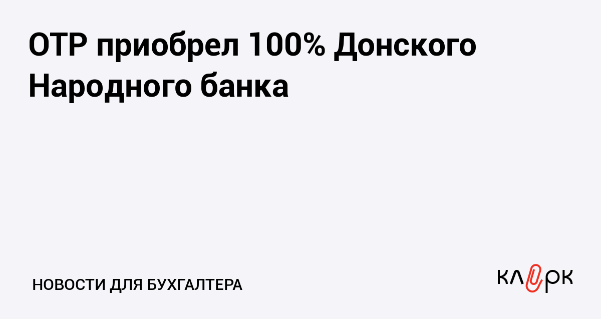 Венгерский банк OTP приобрел 100% Донского Народного банка 40,95 млн. долларов.